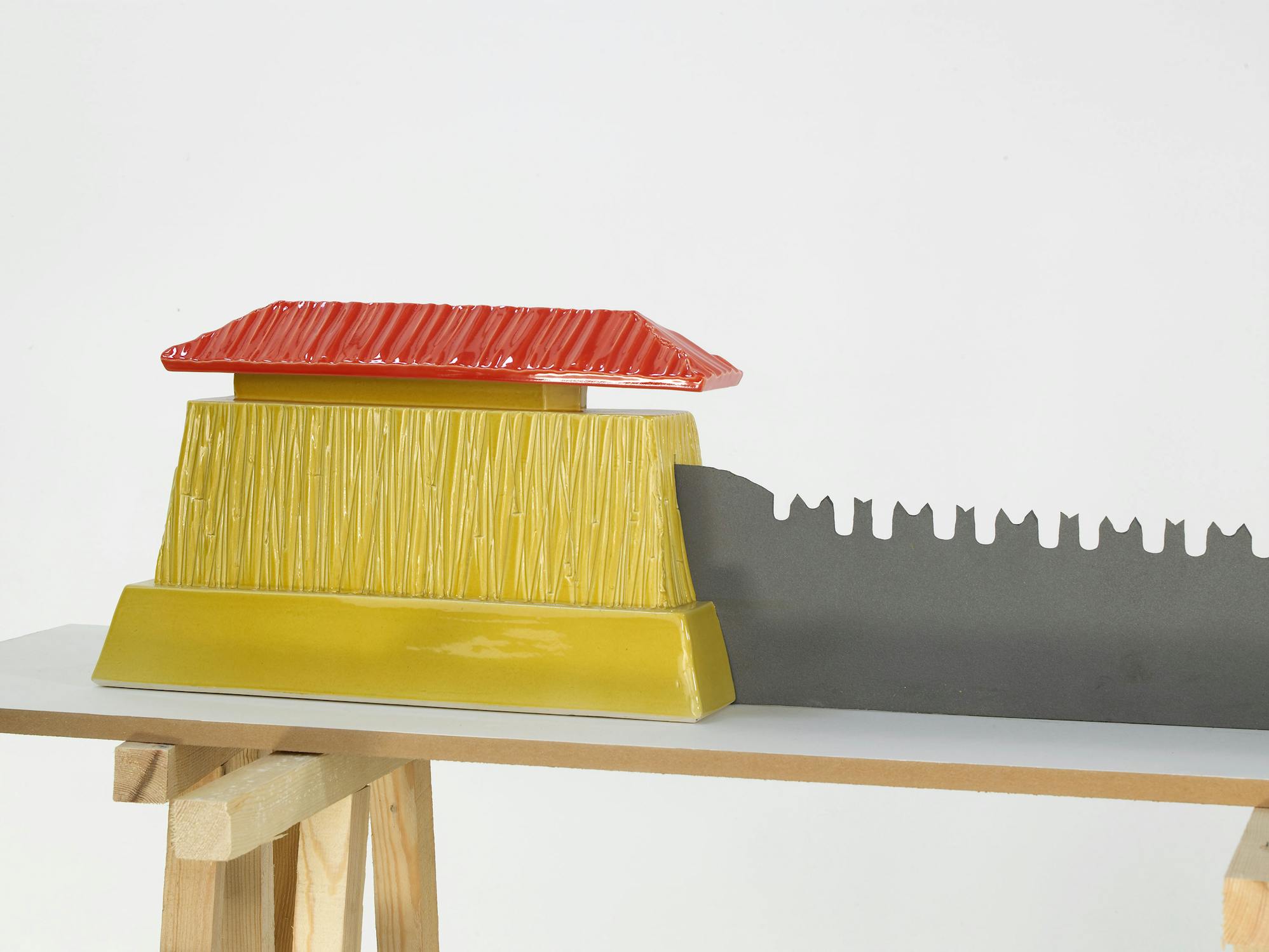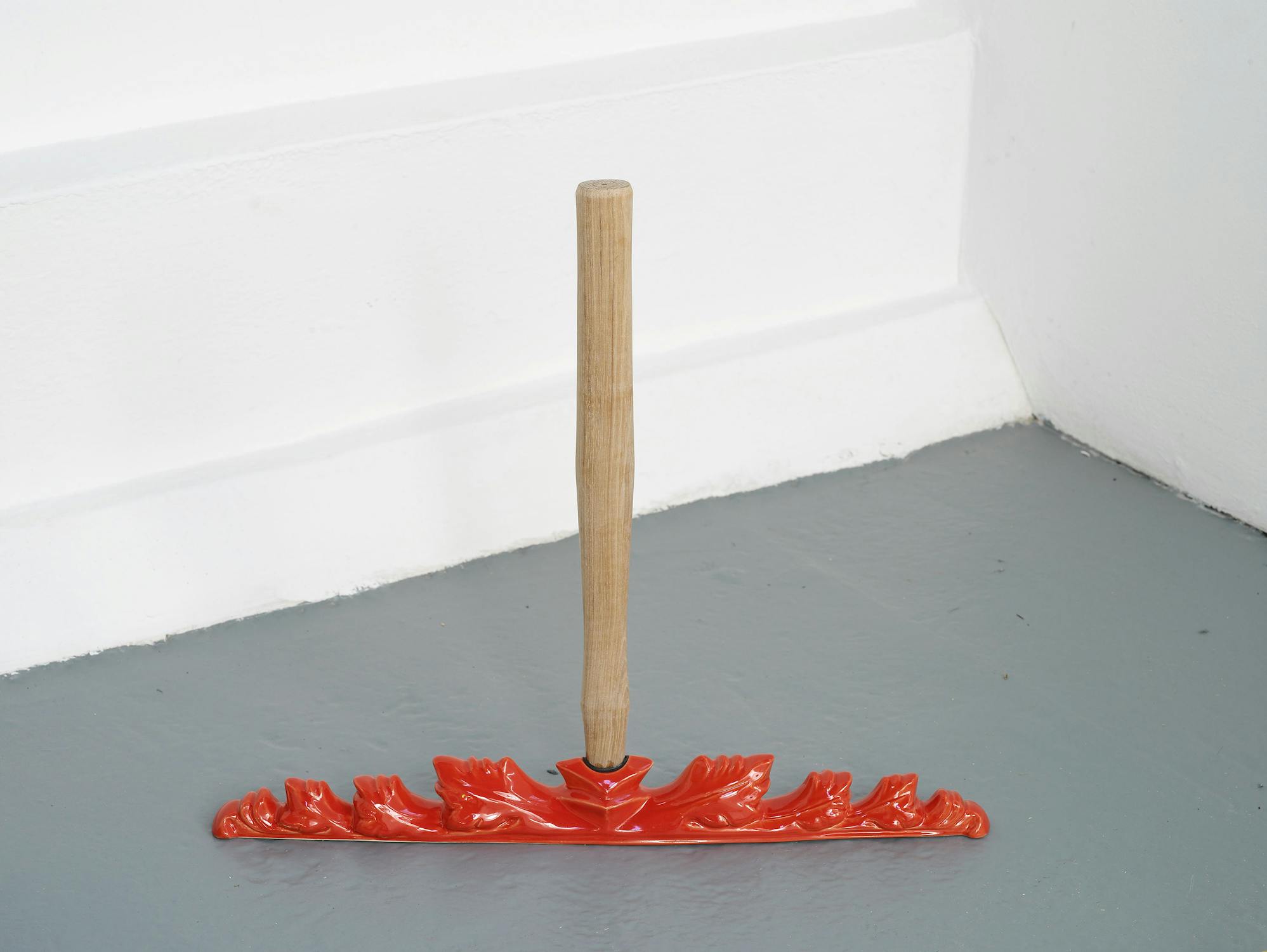 Ideas challenging the economy of productive labour are implicit in Slee’s combination of the hand-made and the found object. The uncanny hybrid of the deskilled ready-made and the crafted object convey a subversive humour that playfully investigates the limits of the ceramic tradition. Mass produced, everyday objects are meticulously realized with highly glazed, bright colours. These seductive surfaces recall a Pop or postmodern aesthetic that belies the psychological and cultural references within the object.