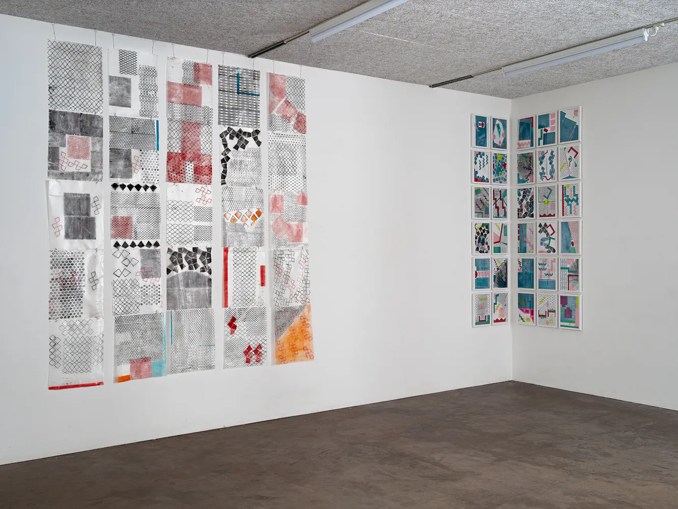 “Adia Wahid creates diagrammatic paintings in which visual formulas repeat across the canvas. Mesmeric in their order they also draw attention to the ‘errors’, the glitches that occur within her self- applied system. In Wahid’s work human error mirrors the technological and biological glitches that occur in the wider world. The paintings can be read as microcosms of the city, a site of continually applied ‘order’ and the intrinsic disruption that is its counterpart.” - Cooke Latham Gallery
