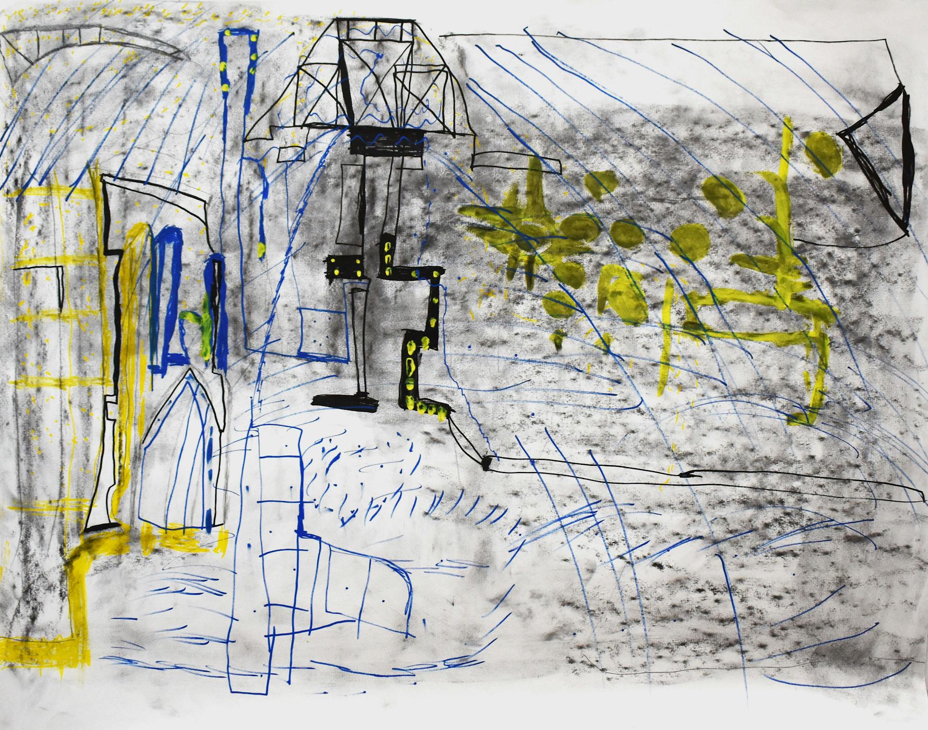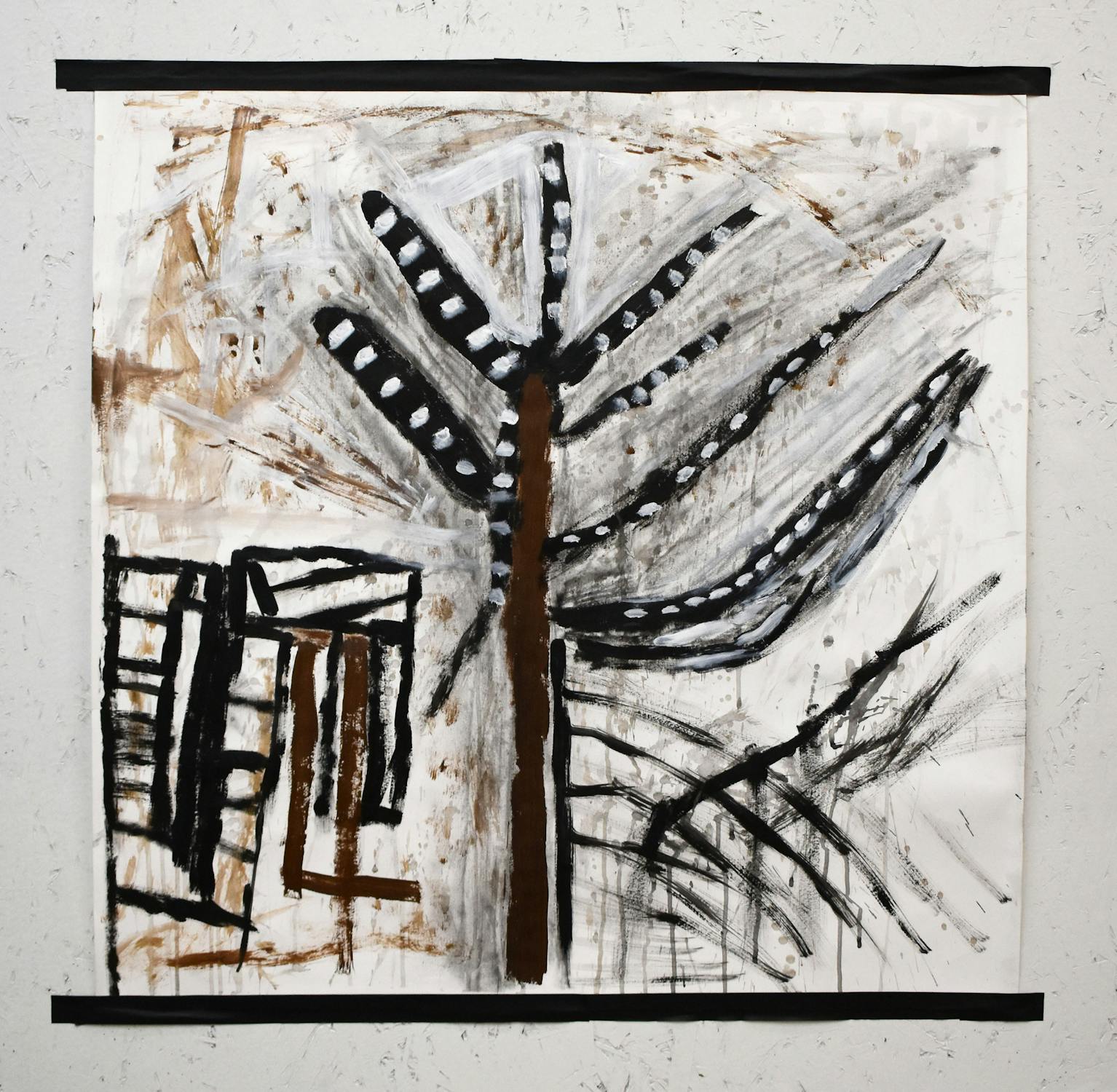 The artists' stripped-back colour palette sets the stage for these experiments, where multiple layers and intuitive collage is used to construct backdrops. Alongside this, he uses drawing – primarily with charcoal and an eraser – to explore his ideas around the 'complications of life.' Heath’s process is activated through storytelling and themes such as ‘the rhetorical nightmare’, ‘Nick Cave’s hands’ and ‘blank like it’s the nothingness’.