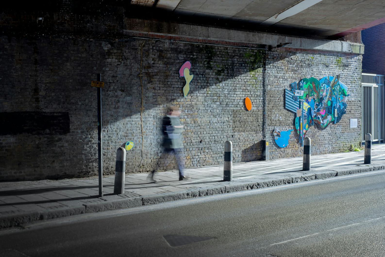 Flo Brooks has created a large-scale painting for Clapham – the artist’s first permanent public commission. Launched on 25 January 2023, the work is presented on a bridge underpass on Bedford Road in Clapham North – a short walk from Studio Voltaire.