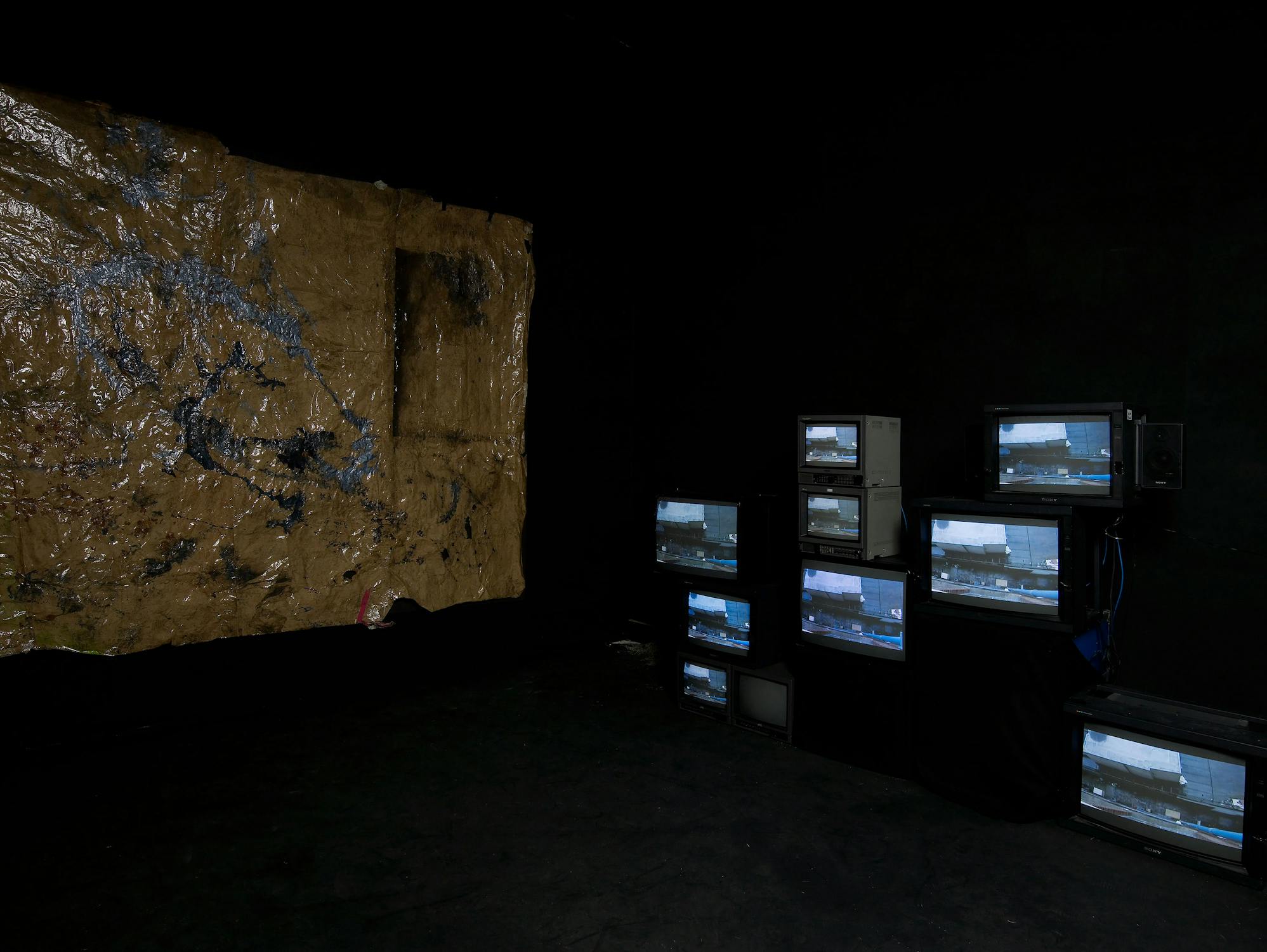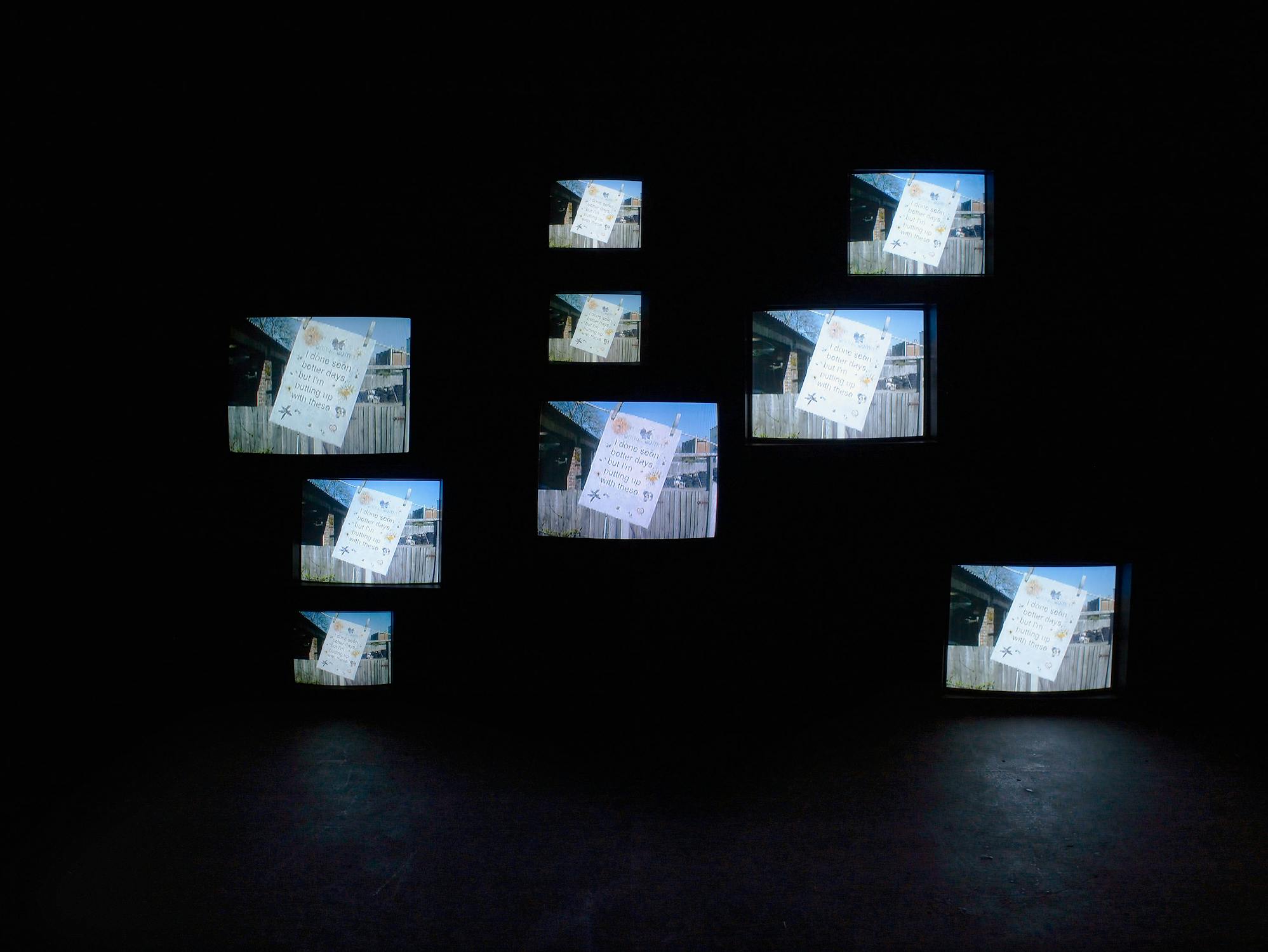 Studio Voltaire presented a solo exhibition by Jimmy Merris featuring a new single-channel video piece displayed across a bank of monitors.