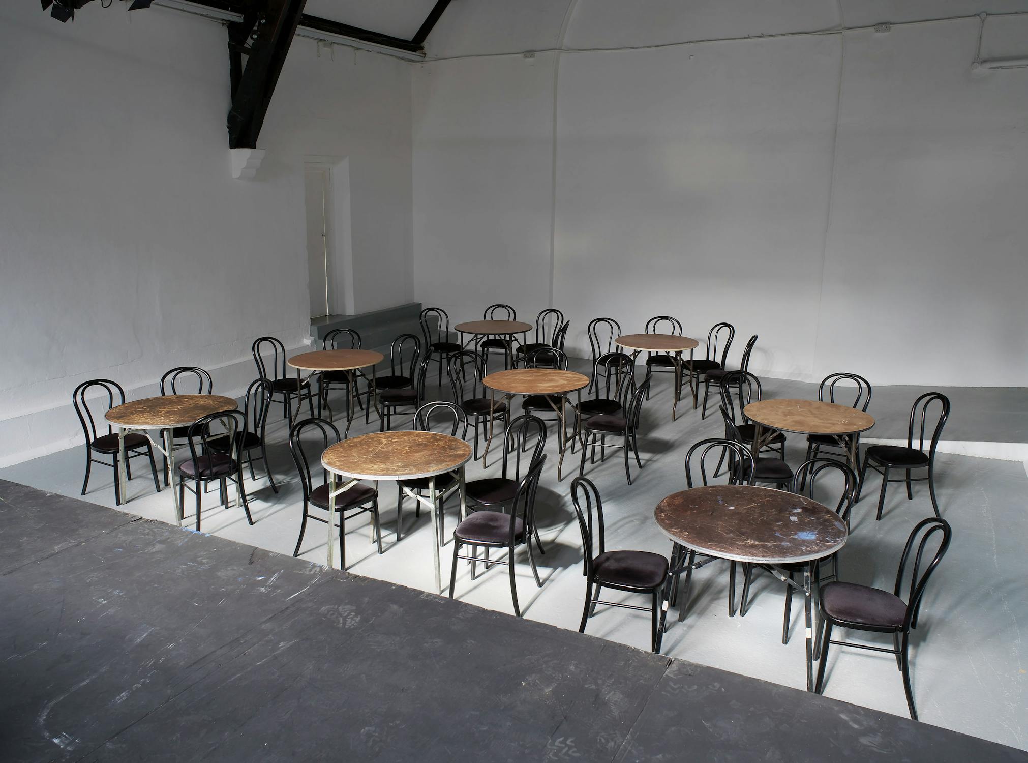 Joanne Tatham and Tom O’Sullivan, THE STORY OF HOW WE CAME TO BE HERE, WHAT WE DID BEFORE WE GOT HERE, HOW YOU HAVE FORGOTTEN WHY YOU ASKED US HERE AND WHY WE CANNOT REMEMBER WHY WE CAME, OR: IS THIS WHAT BRINGS THINGS INTO FOCUS?, 2012. Performed by Gareth Brierley. Installation View, Studio Voltaire, London. Courtesy of the artists, the performer and Studio Voltaire, London. Photo: Andy Keate.