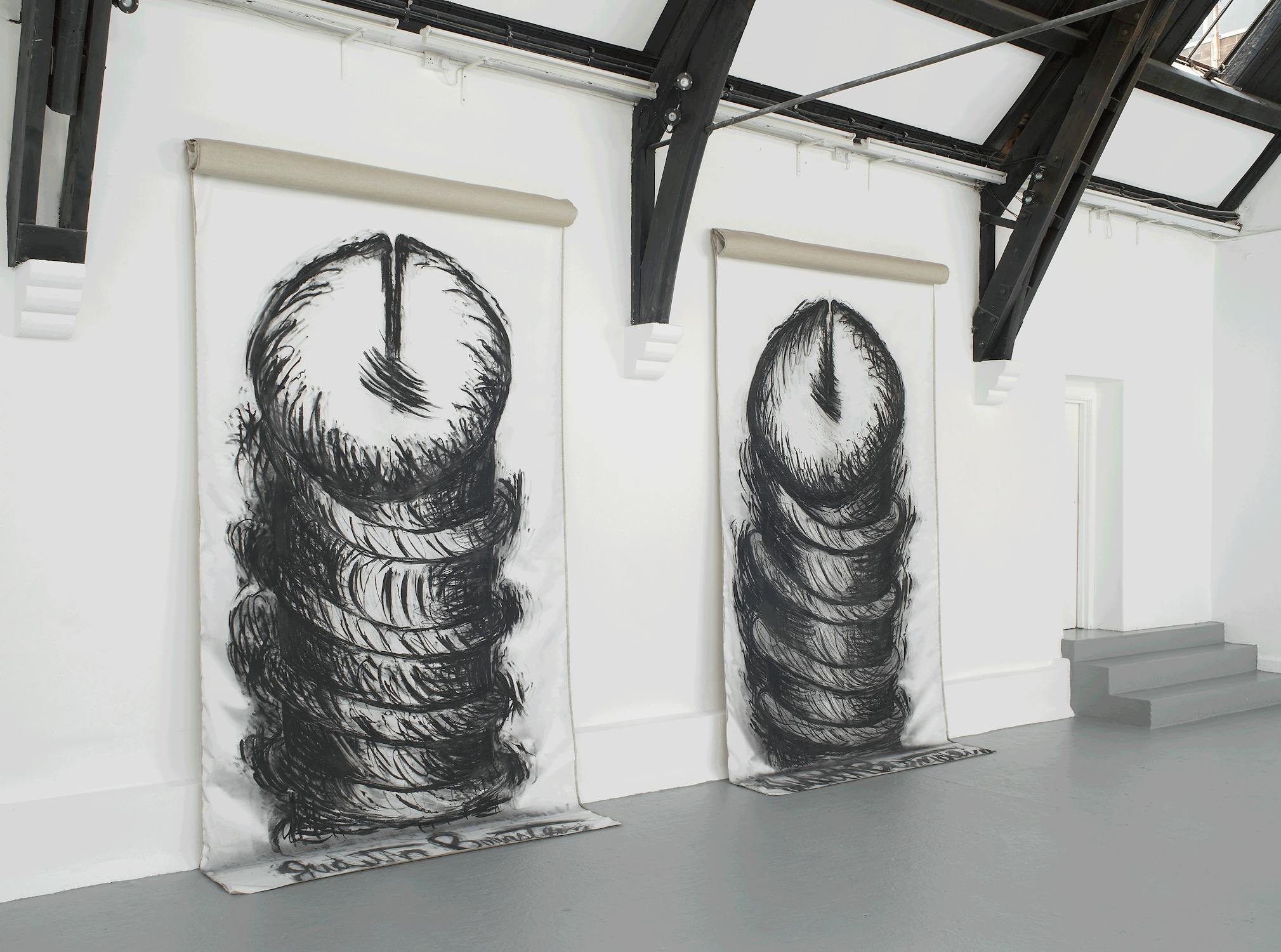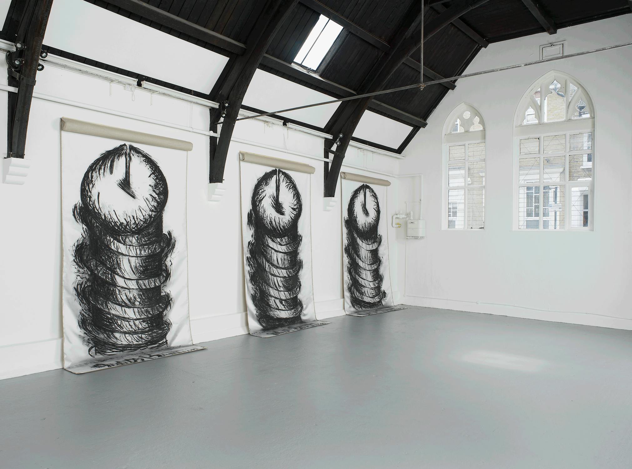 Rising by New York-based Judith Bernstein, was her first solo presentation to take place in the UK. For this commission, the artist conducted a production residency in the gallery, working on a new body of large-scale paintings and drawings, including her largest painting to date.