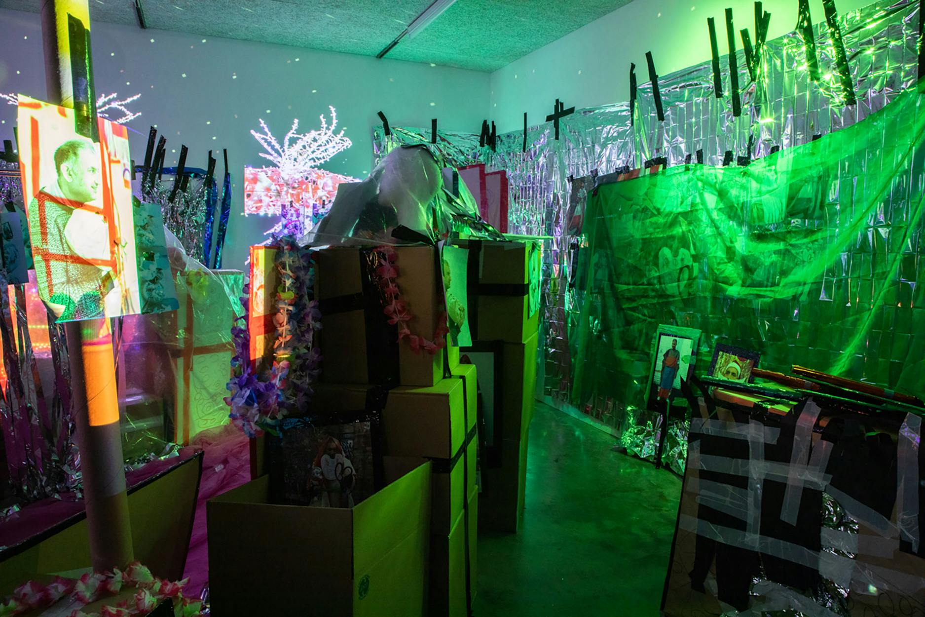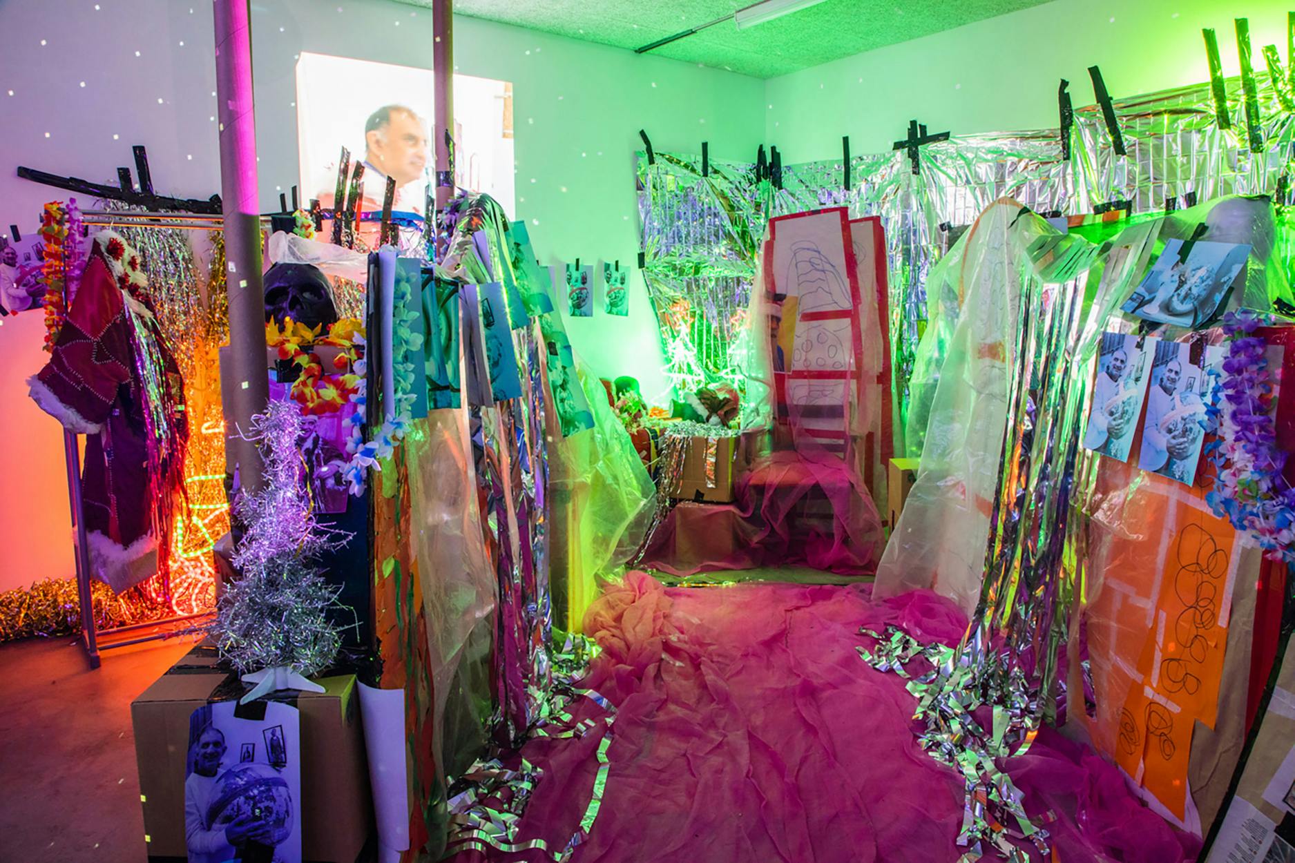 In his practice, Kapil stages large-scale installations which contain bricolage, costumes and props which form spontaneous and site specific participatory performances, incorporating sound and projections to create ritualistic and often surreal work. At Studio Voltaire, Kapil had expanded space and time to focus on testing and experimentation. Supported by ActionSpace Artist Facilitators and guest mentor artists, the residency provided production support, external visits, artist fees and a production budget, allowing Kapil to develop his practice in meaningful ways.