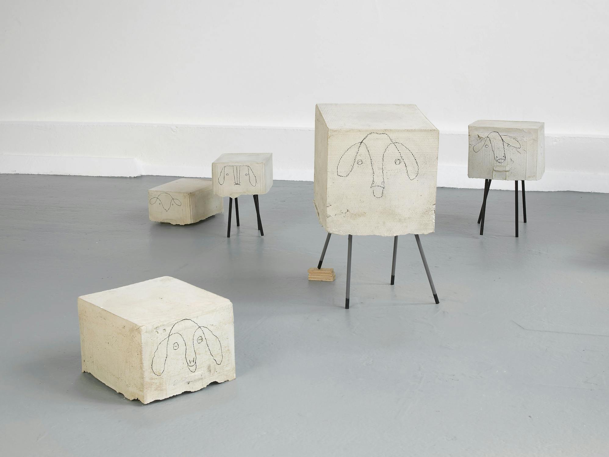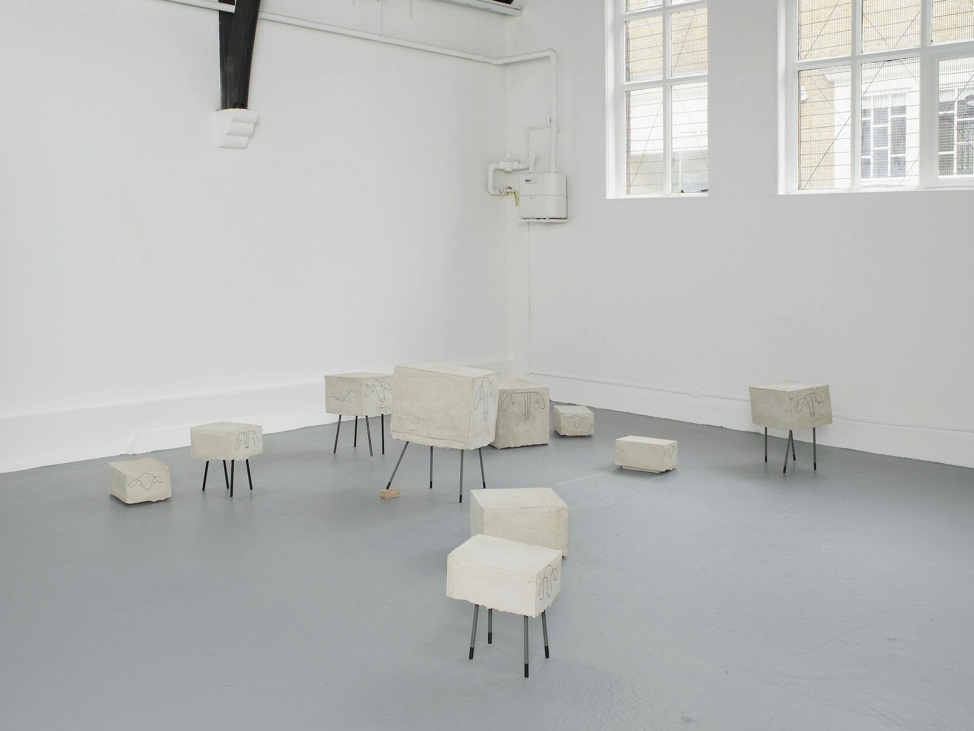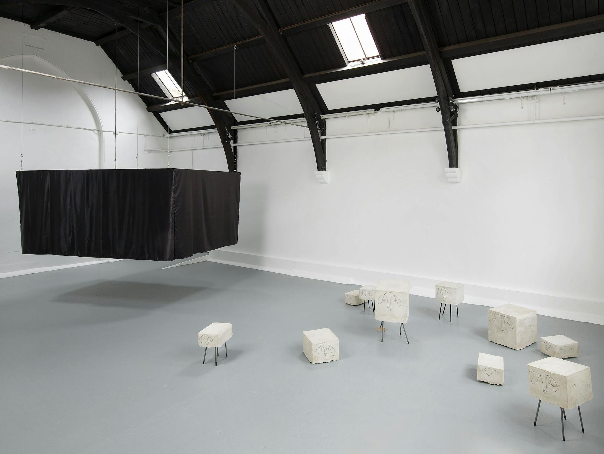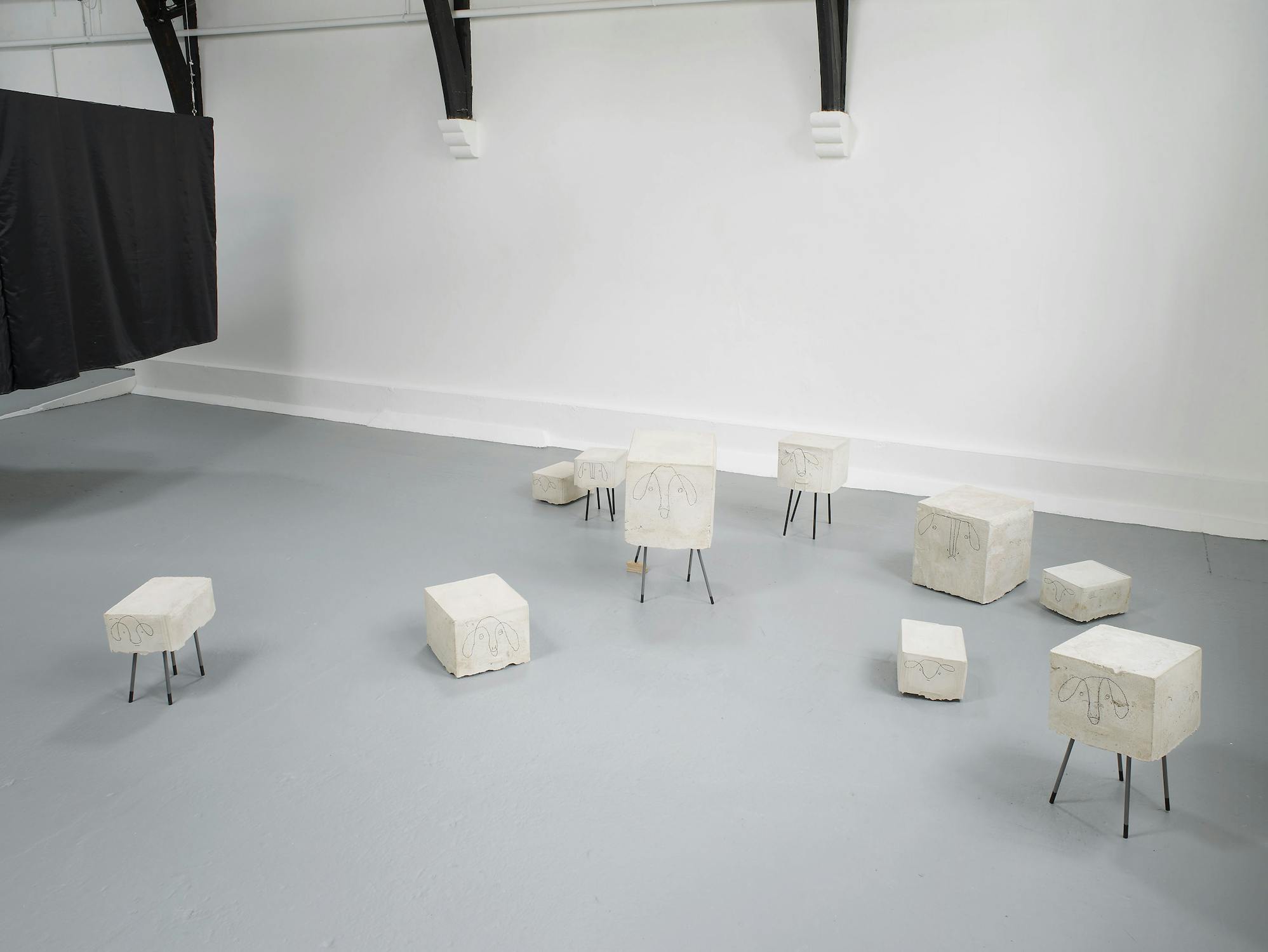 For her presentation at Studio Voltaire, Hopf’s new film work draws upon references to silent cinema and feminist film material from the suffragette era. A tented environment to house the film is accompanied by a series of sculptural works taking the form of a ‘flock’ of concrete sheep.